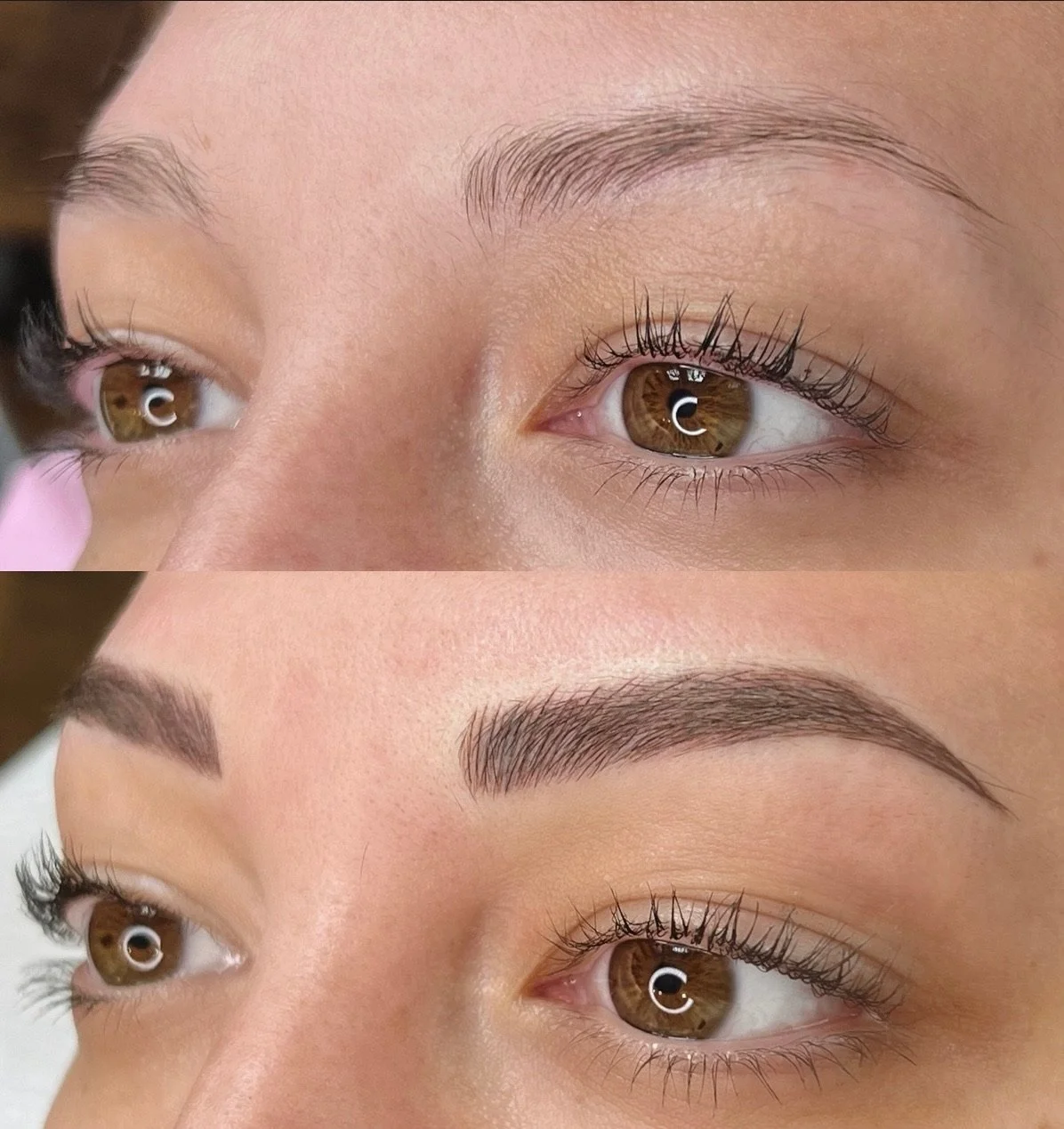 With combo brows, the artist utilizes two forms of semi-permanent cosmetic tattooing: microblading and machine shading.